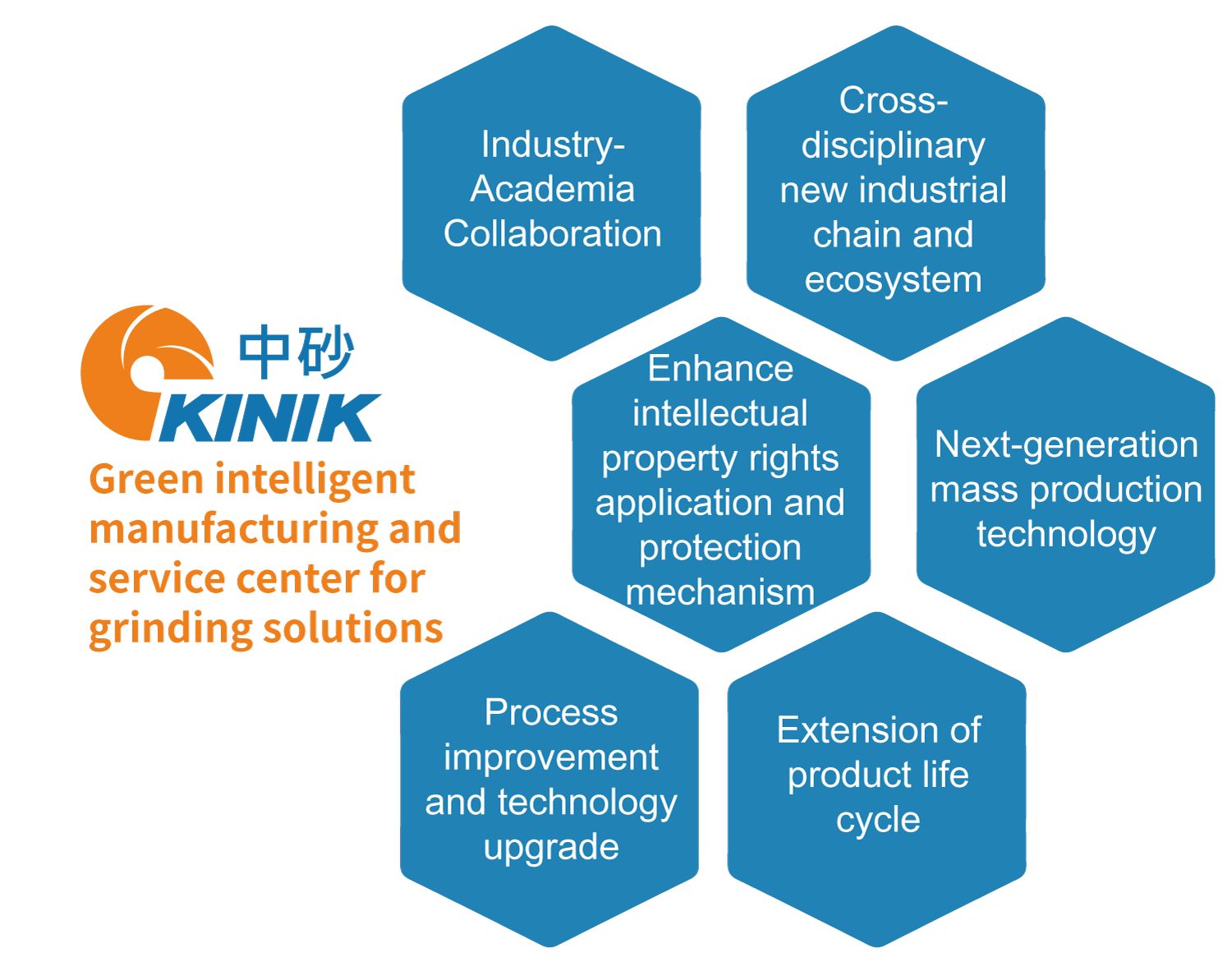 Centered on grinding, KINIK uses the most effective methods to refine technology and conduct mass production to solve problems and create advantages, extending our R&D energy from basic research to product improvement and innovative development. In addition to accelerating product R&D through industry-academia cooperation, flexible field development and investment mergers and acquisitions, the Company has also established an intelligent manufacturing and solution service platform, cross-disciplinary new industrial chain and ecosystem, manufacturing process improvements and extension of product life cycle. We have been expanding our technology spectrum and basic research projects, as well as next-generation product mass production technology and strengthening intellectual property rights application and protection mechanisms. Thus, we strive to achieve the goal of becoming an green intelligent manufacturing and service center of grinding solutions.